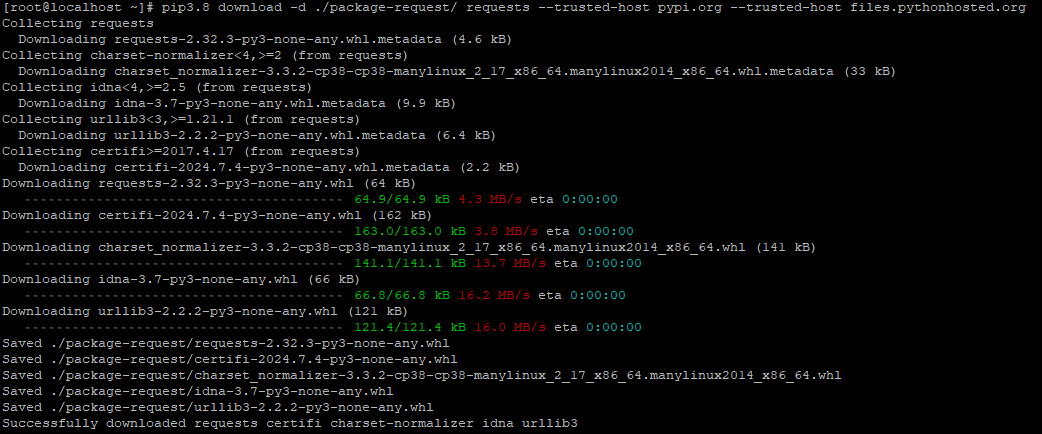pip3 download -d ./package-requests/ requests --trusted-host pypi.org --trusted-host files.pythonhosted.org